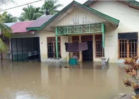 Genangan air yang terus meninggi sejak malam hari, mengakibatkan puluhan rumah warga terendam, sementara jalur negara Tapaktuan–Medan lumpuh akibat banjir.
