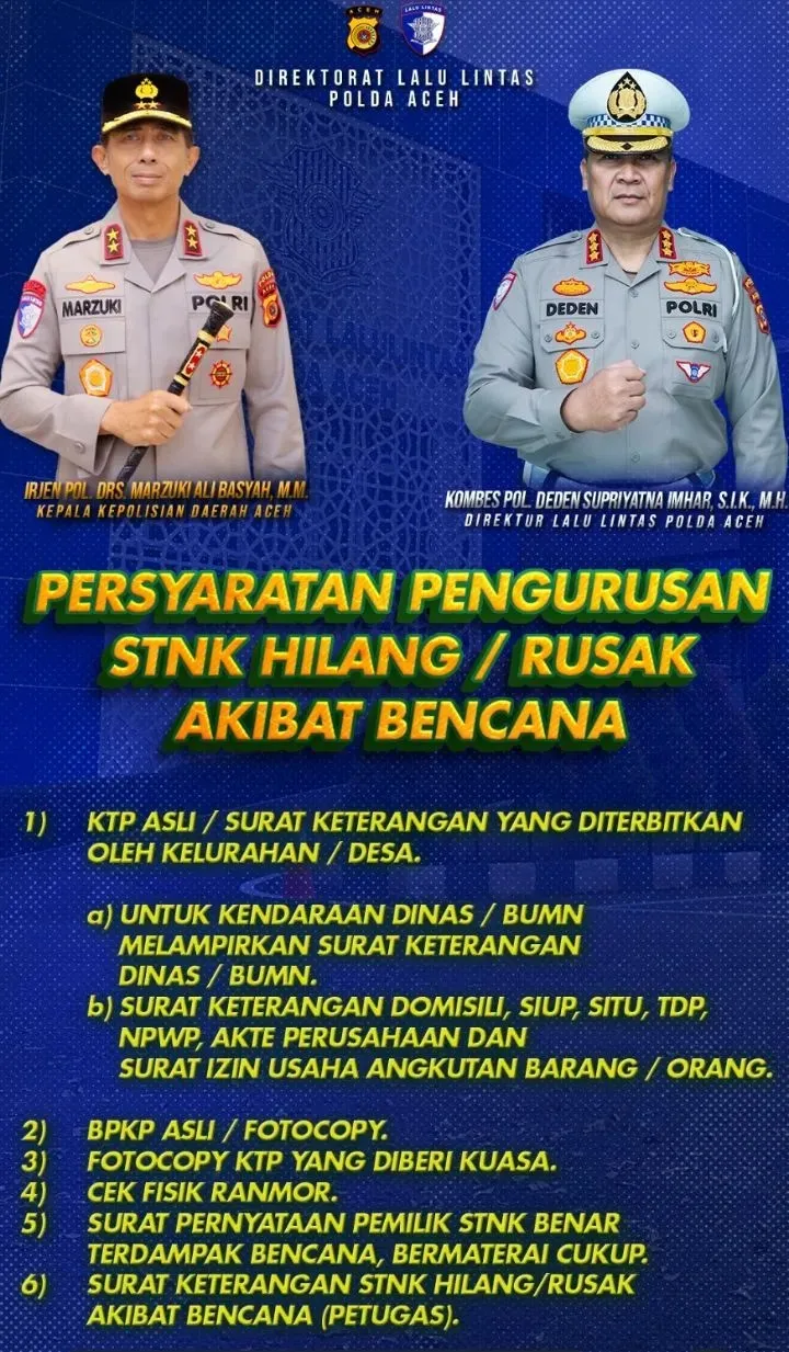Polda Aceh Beri Kemudahan Pengurusan STNK Hilang atau Rusak Akibat Bencana, Ini Syaratnya 9 Januari 2026News
