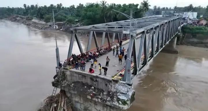 BIREUN | REALITAACEH — Jembatan yang berada di jalur utama Banda Aceh–Medan ambruk ke sungai saat banjir besar melanda Aceh dalam beberapa hari terakhir. Kejadian tersebut terlihat pada Sabtu, 29 November 2025.