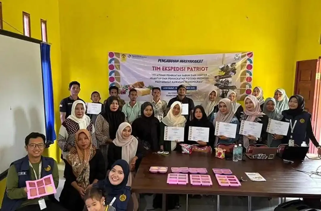 ACEH BARAT | REALITAACEH – Tim Ekspedisi Patriot Universitas Indonesia (UI) memberikan pelatihan kepada warga transmigrasi di Aceh Barat mengenai pengolahan minyak jelantah menjadi sabun bernilai ekonomis.