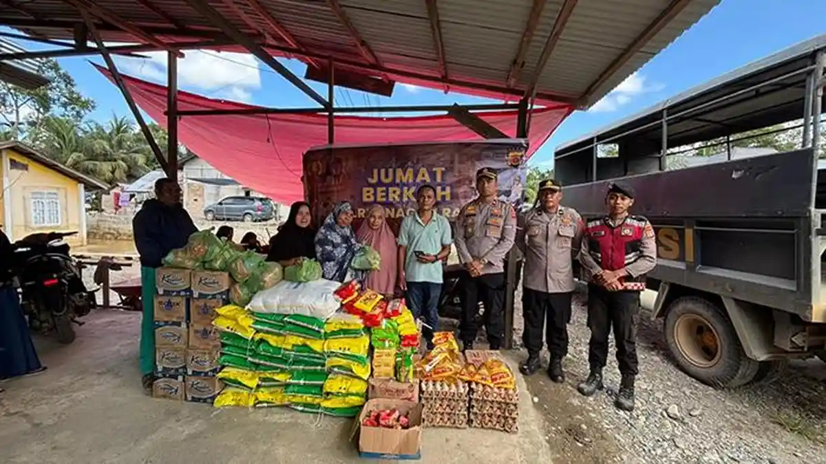 Wakapolres menyampaikan bahwa kegiatan Jumat Berkah merupakan wujud kepedulian Polri terhadap masyarakat, khususnya bagi warga yang sedang mengalami kesulitan ekonomi akibat musibah banjir.