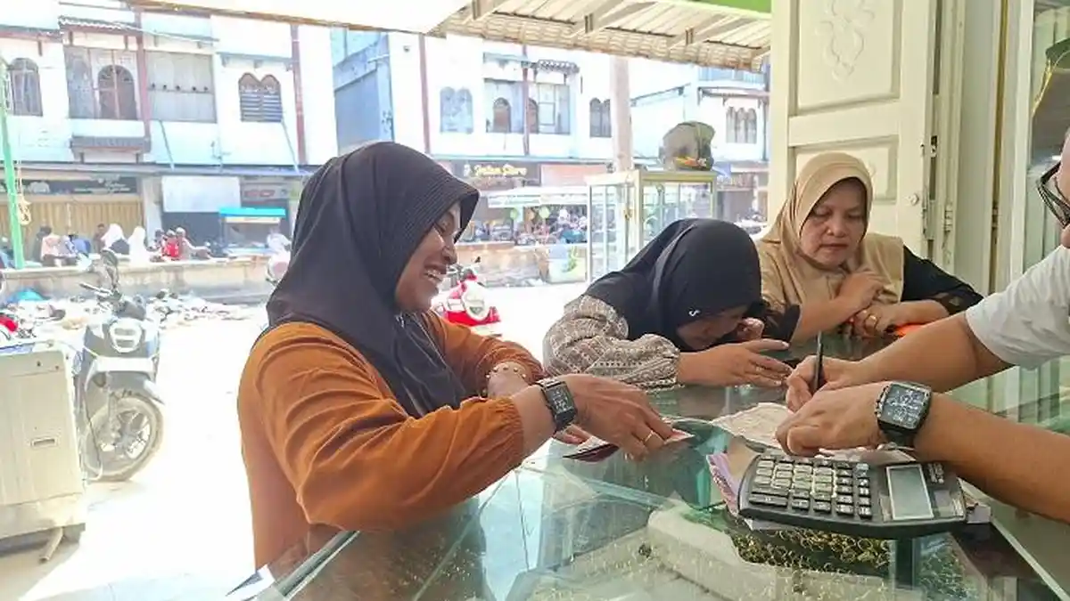 Pantauan wartawan Maulidi Alfata, masyarakat ramai mendatangi toko emas untuk menjual perhiasan seperti cincin, kalung, gelang hingga antingnya, Senin (8/12/2025).